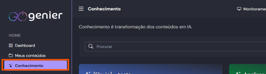 1.1. Dentro do GOgenier, acesse aba de Conhecimento localizada no menu lateral:
