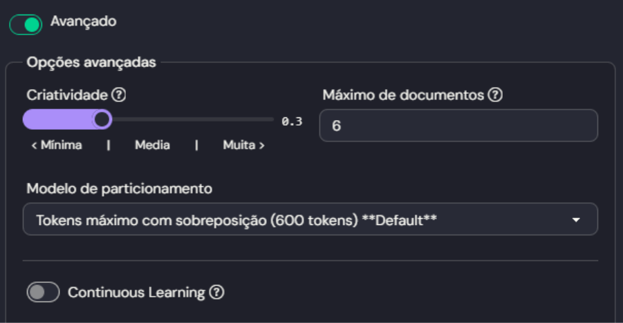 Máximo de documentos: Determina o máximo de documentos que podem ser utilizados para gerar a resposta.