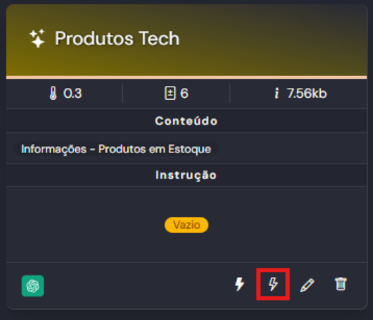 A opção acima apenas processa o conhecimento, atualizando-o com as alterações desde o último processamento. Caso deseje limpar todo o conteúdo do conhecimento e reprocessar do zero, clique no ícone ao lado: