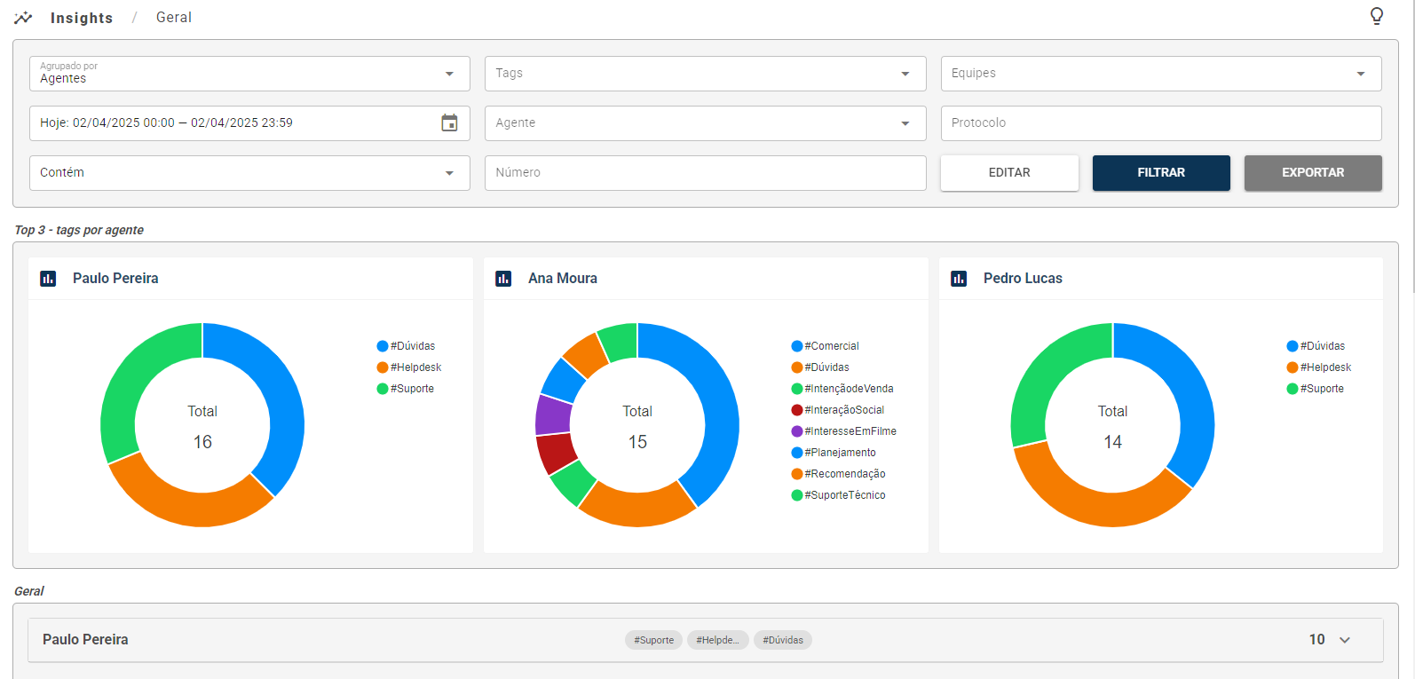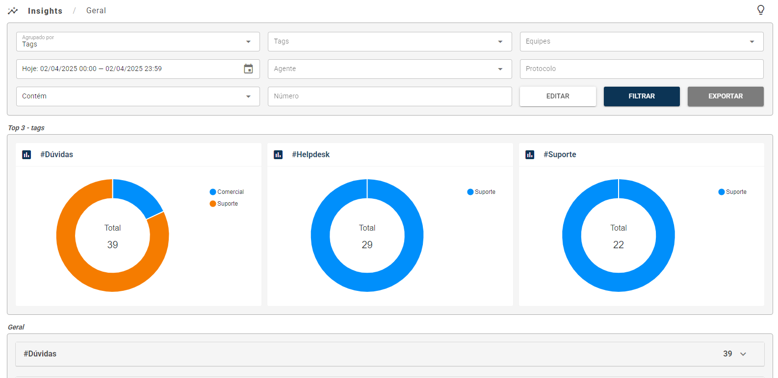 A funcionalidade Insights utiliza os recursos de Inteligência Artificial do GOgenier para gerar análises valiosas sobre os atendimentos realizados na sua operação.