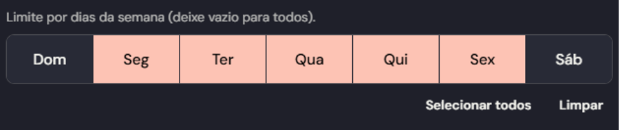 Caso nenhum dia seja selecionado, serão considerados todos os dias da semana.