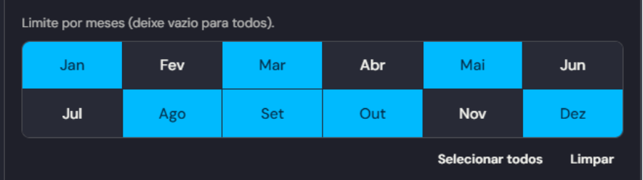 Caso nenhum mês seja selecionado, serão considerados todos os meses.
