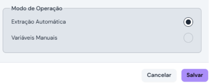 - Variáveis Manuais: Você define manualmente quais variáveis serão extraídas e quais informações devem ser capturadas.