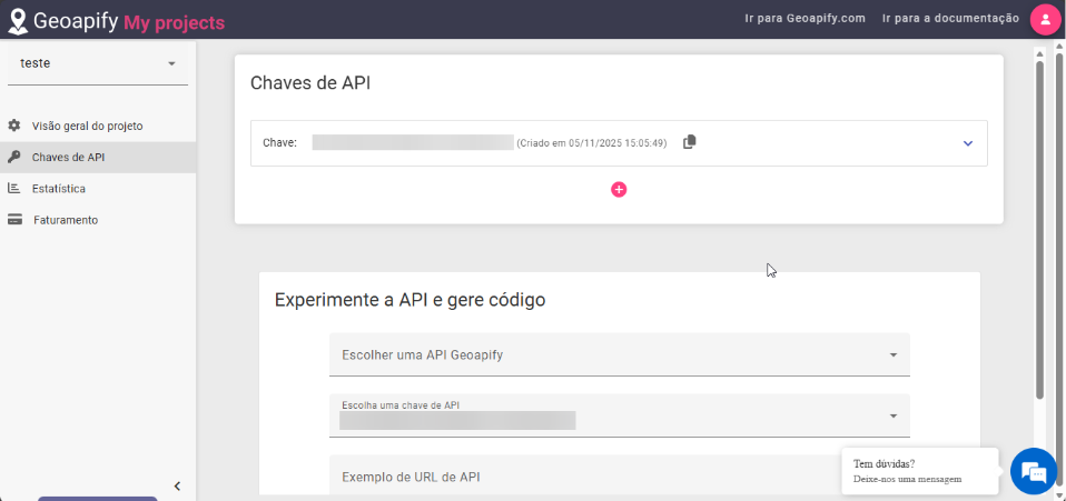 Acesse Geoapify: Geoapify / Meus Projetos e gere sua API Key e copie.