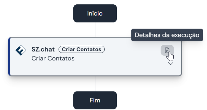 Ao clicar no ícone de detalhes da execução, você terá acesso a informações completas sobre a execução do componente, exibidas em formato JSON, divididas em duas seções: Você verá: